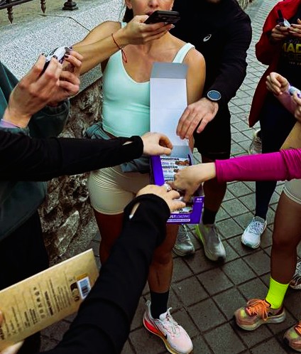 Se ofreció una degustación post-entreno en un momento clave, acompañada de un flyer informativo con código QR que dirigía a más información sobre la marca y permitía dejar feedback real a través de una breve encuesta.